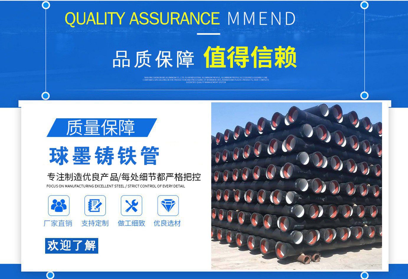 山西飛翔鑄業(yè)有限公司是一家以新興技術(shù)致力于研制開(kāi)發(fā)、生產(chǎn)、銷(xiāo)售、施工安裝各種球墨管廠家,球墨鑄鐵管價(jià)格,國(guó)標(biāo)球墨管,k9球墨鑄鐵管,國(guó)標(biāo)球墨鑄鐵管,離心球墨鑄鐵管等系列鑄鐵產(chǎn)品。公司擁有完善的銷(xiāo)售、售后服務(wù)體系及一支由鑄造專(zhuān)家、工程師組成的精通產(chǎn)品設(shè)備和生產(chǎn)鑄造的技術(shù)力量隊(duì)伍。隨著企業(yè)的發(fā)展,我們積累了豐富的鑄造經(jīng)驗(yàn)與科技水平。使得產(chǎn)品具有高強(qiáng)度、高韌性、耐腐蝕性強(qiáng)等性能。同時(shí),我們獲得質(zhì)量管理體系認(rèn)證、產(chǎn)品質(zhì)量認(rèn)證、職業(yè)健康體系認(rèn)證、環(huán)境管理體系認(rèn)證。產(chǎn)品暢銷(xiāo)各地并打入韓國(guó)、新加坡等東南亞市場(chǎng)。 在未來(lái)的發(fā)展中,公司奉行誠(chéng)信共雙贏,合作創(chuàng)盛世的企業(yè)理念。讓我們一起共創(chuàng)美好未來(lái)! 公司產(chǎn)品采用良好的工藝流程,以確保產(chǎn)品質(zhì)量的穩(wěn)定性:以良好的設(shè)備,確保質(zhì)量的可靠性。廣泛應(yīng)用于國(guó)內(nèi)外城市的市政建設(shè),通信,自來(lái)水,消防,園林,環(huán)保等行業(yè),產(chǎn)品大獲贊譽(yù)! 我們有多年的井蓋生產(chǎn)經(jīng)驗(yàn),多名老技術(shù)工人有將近二十年的生產(chǎn)經(jīng)驗(yàn),還聘請(qǐng)多名新技術(shù)研發(fā)人員,因?yàn)槲覀兪冀K堅(jiān)信質(zhì)量才是未來(lái)生存的根本,只有把質(zhì)量保證了,企業(yè)才會(huì)有更加美好的未來(lái)。公司堅(jiān)持用心服務(wù),誠(chéng)信為本,與時(shí)俱進(jìn),科技為先的企業(yè)理念,堅(jiān)持科技先導(dǎo)、竭誠(chéng)為廣大用戶服務(wù)。歡迎各界朋友蒞臨我公司參觀,指導(dǎo)洽談業(yè)務(wù),相信選擇我們就是選擇我們共贏的明天...